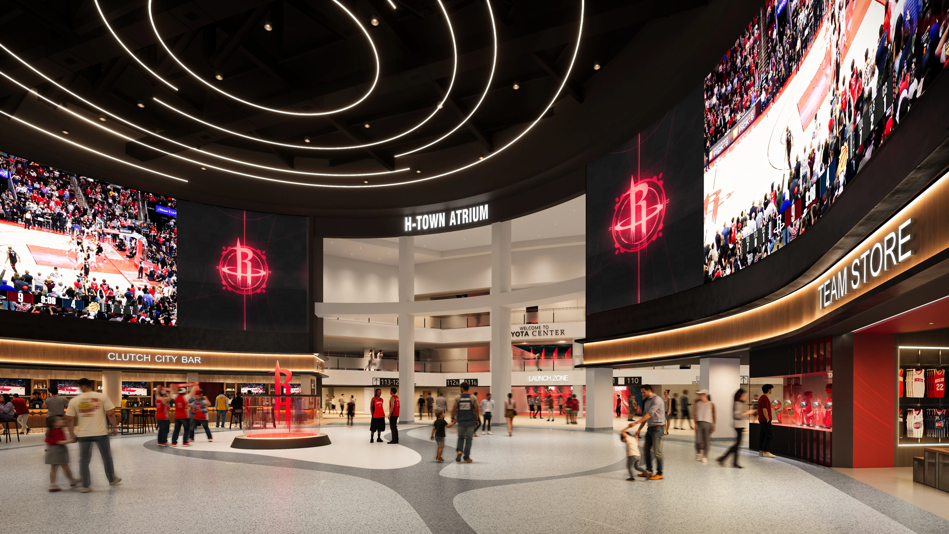 Toyota Center is undergoing a transformation to elevate the fan experience and solidify its role in hosting large-scale, city-wide events. Plans for upgrading the downtown arena include a new 20,000 sf atrium, reconfigured south entry, renovated suites, an overhauled skybridge connecting the arena and the Toyota Tundra garage, and upgraded technology and infrastructure throughout. The new atrium will create upper concourse space for The Sky Bar and HOU Market, providing elevated hospitality and views of downtown Houston.